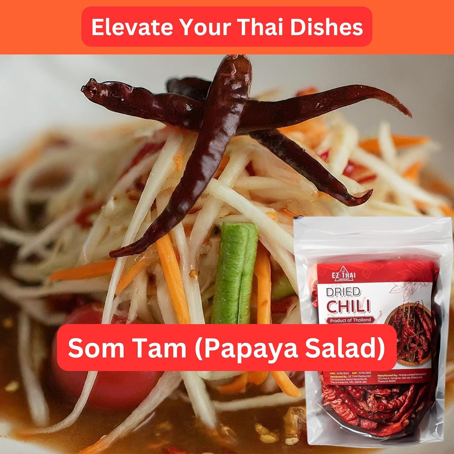 Transform Your Cooking with Authentic Thai ChiliBring Thailand’s signature heat home with EZ THAI Thai chili peppers and chili pepper flair. Our premium whole chilies—sun-dried to preserve every note of aroma and color—unleash bold, fruity spice whether you crave the zing of hot chili peppers or the deeper warmth of red chili pepper.Sun-Dried Perfection – Dried Chili Peppers for CookingOur 100% natural dried chili peppers are sun-dried without chemicals. Each whole dried pepper bursts with smoky heat, making them ideal dried peppers for cooking—from classic Tom Yum soup to fiery curry pastes. Resealable packaging ensures maximum freshness, color, and potency.Versatile Heat – From Thai Pepper to Global CuisineEZ THAI Thai pepper, thai chilli, and thai peppers adapt to all cuisines:Spice up curries – Add depth to Indian, Sichuan, or Thai curriesInfuse oils & sauces – Craft homemade chili oil or hot sauceSprinkle & garnish – Elevate pizza, pasta, rice bowls, and salads with a vibrant kickPremium Quality You Can TrustExperience top-tier dried chilis—non-GMO, 100% natural, and free from additives. Each pepper is hand-selected and sun-dried to deliver consistent color, aroma, and heat, guaranteeing the highest quality Thai product in your pantry.EZ THAI Impact – Fairtrade & 1% Wellness to FarmersWe partner directly with smallholder growers in Chiang Rai, ensuring fair-trade pricing that uplifts entire communities. EZ THAI commits 1% of every sale to wellness programs—supporting healthcare, education, and sustainable farming initiatives for the families who cultivate our premium dried birds eye chili peppers. Cook with purpose and spice with heart.