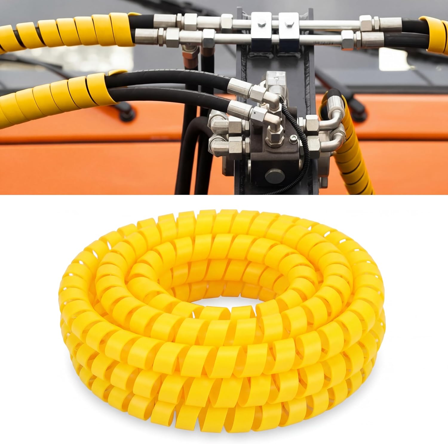Features: The spiral design allows for easy disassembly and assembly, can be cut to the desired length, and remains secure for wrapping cables without falling. Spiral hose covers conceal and protect important cables from abrasive forces, extending their lifespan. Specifications: Material: polyethylene Color: yellow Size: 3/4 inch Package includes: 1 x Hydraulic hose protector Manual measurement, please allow slight errors on size. The color may exist a slight difference due to different screen displays. Winding risk may exist, please keep our product away from children