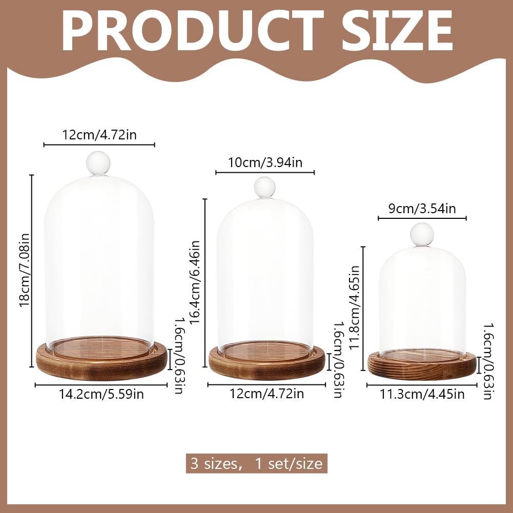 Glass Cloche Dome with Wooden Base triple set brings instant vintage charm to any table while letting you show off cakes, tiny plants under clear bell jars. Slide them over dessert plates or rustic wedding centerpieces and watch the room light up with cozy, old world style.