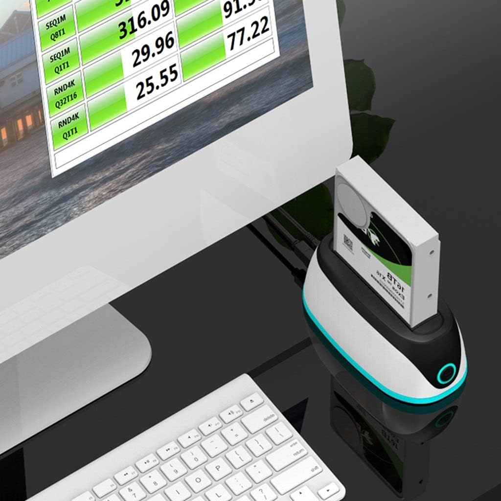 RGB lamp beads gorgeous soft lights. Universal for 2.5/3.5 inch serial hard disk. No operation for 10 minutes and enter Intelligent sleep. Plug and play, tool-free plug-in. Material: ABS Plastic Output Interface: USB3.0 Main Control Scheme: ASM1153E Transmission Rate: 5Gbps Product Power Supply: 12V 2A External Power Supply Support Capacity: Single Disk 16TB Applicable Hard Disk: Universal for Serial Port 2.5/3.5 inch Hard Disk Support System: for /Mac/Linux Multi-System Compatible, No Driver Installation Required Indicator Status: The chassis is automatically changes color after power on, and the blue light flashes when reading and writing data Package list: 1x HDD Docking Station